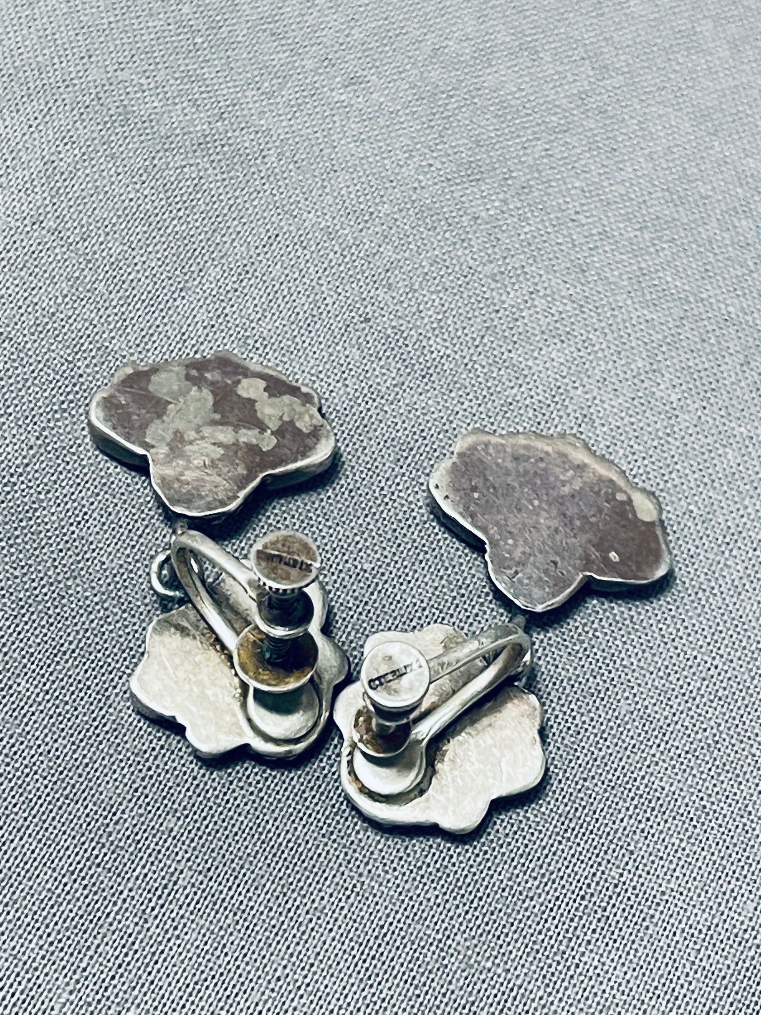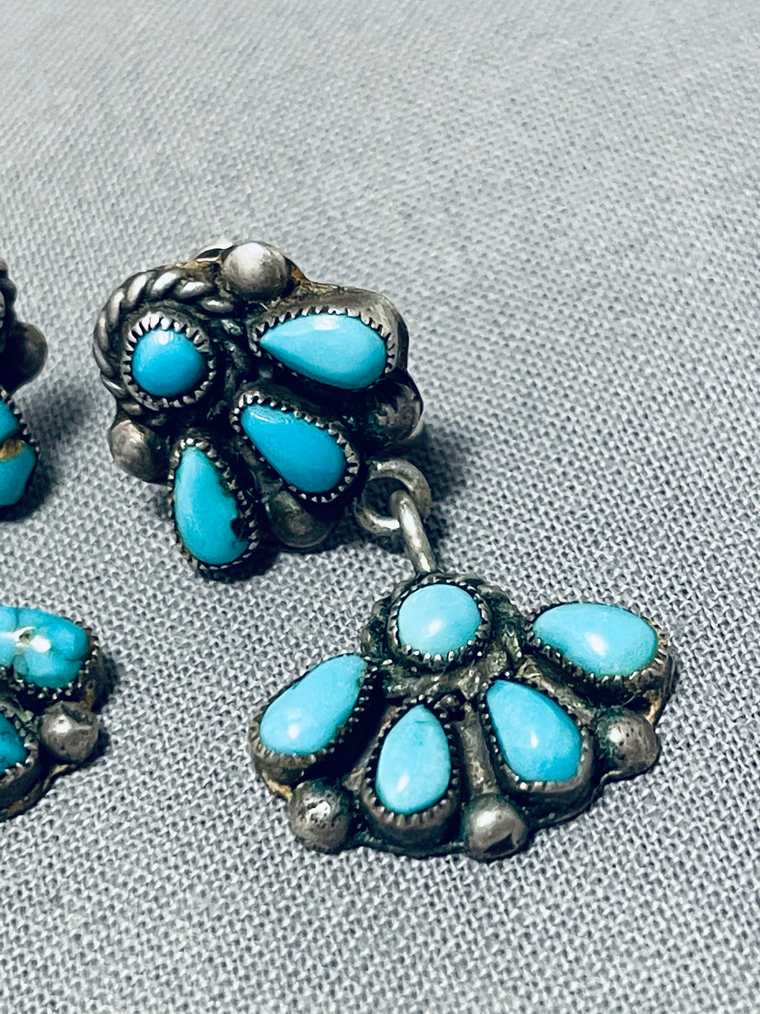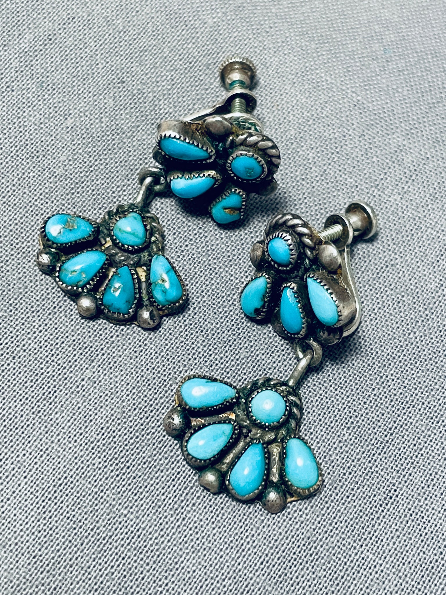 Wonderful Vintage Native American Zuni Turquoise Sterling Silver Earrings