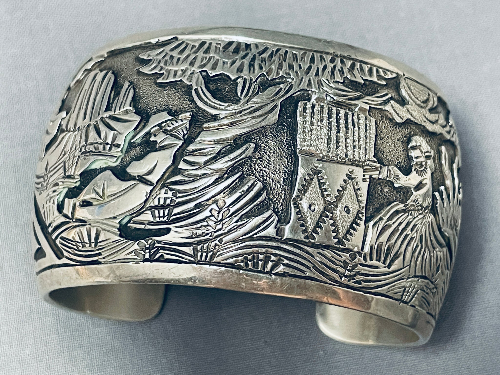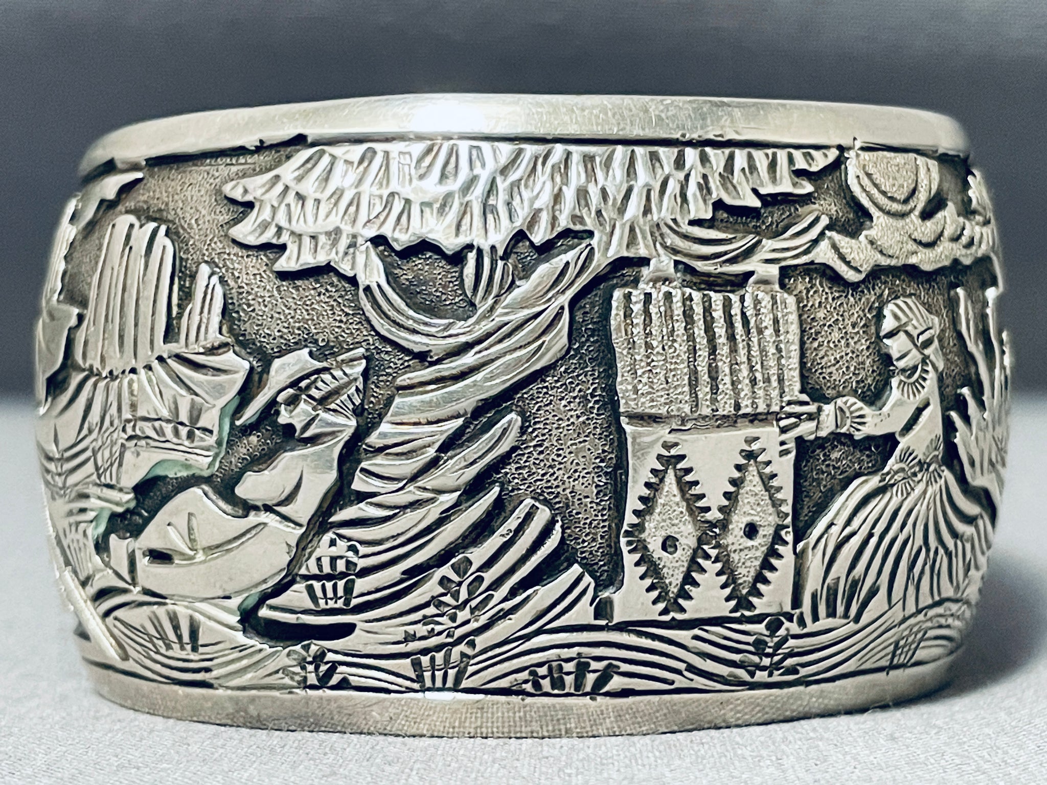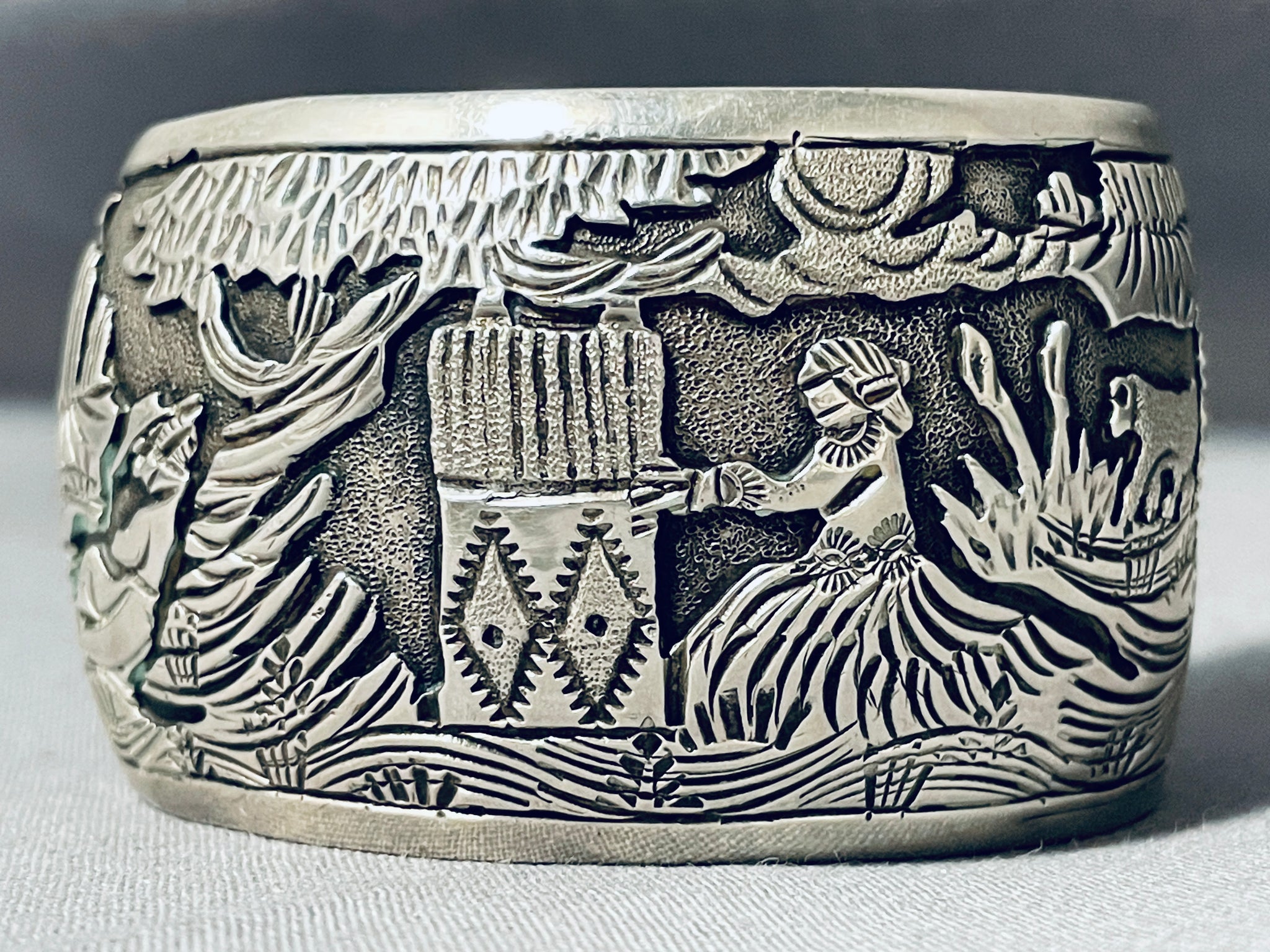 Works Of Intricacy Vintage Native American Navajo Rug Sterling Silver Wide Bracelet