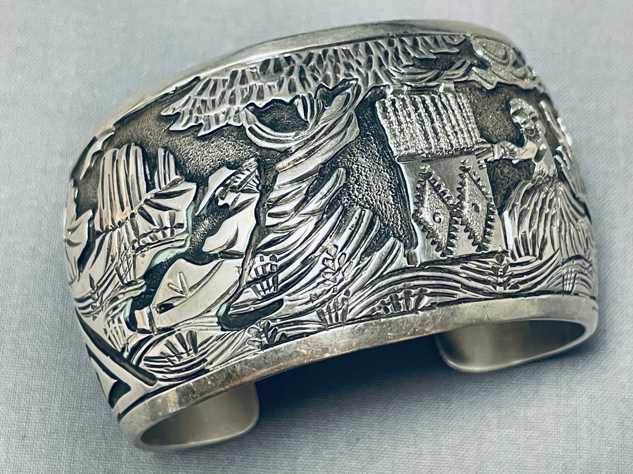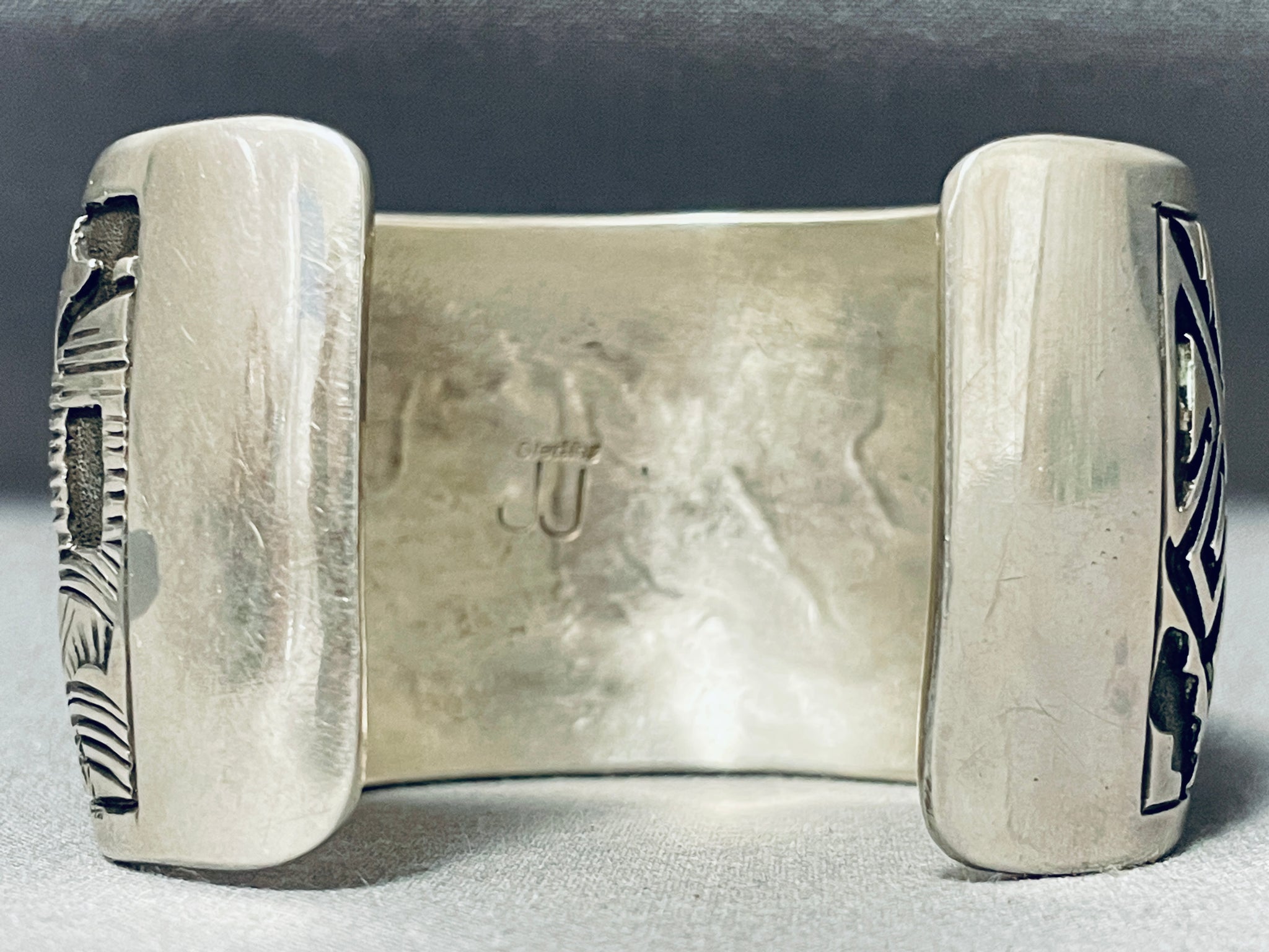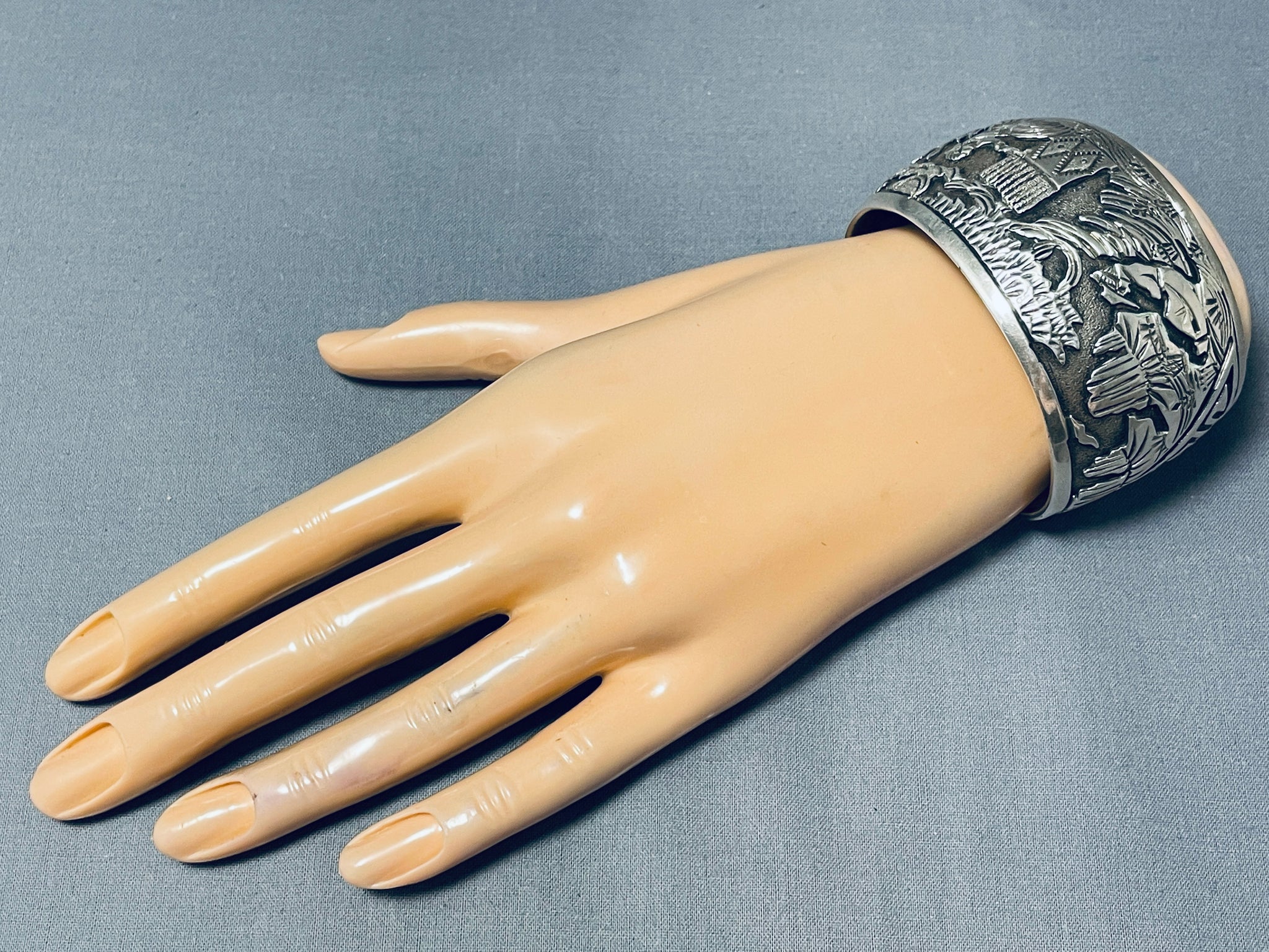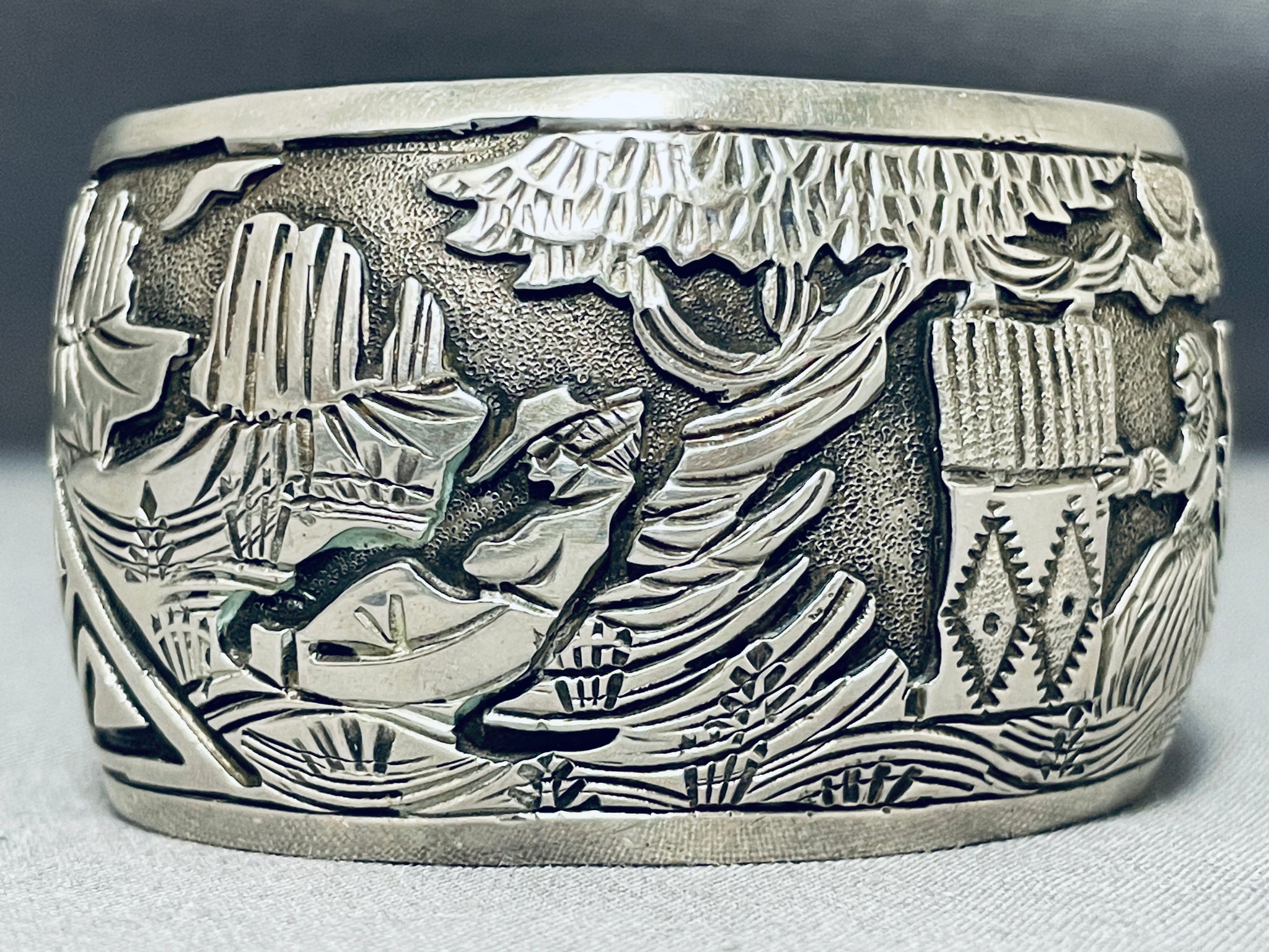 Works Of Intricacy Vintage Native American Navajo Rug Sterling Silver Wide Bracelet