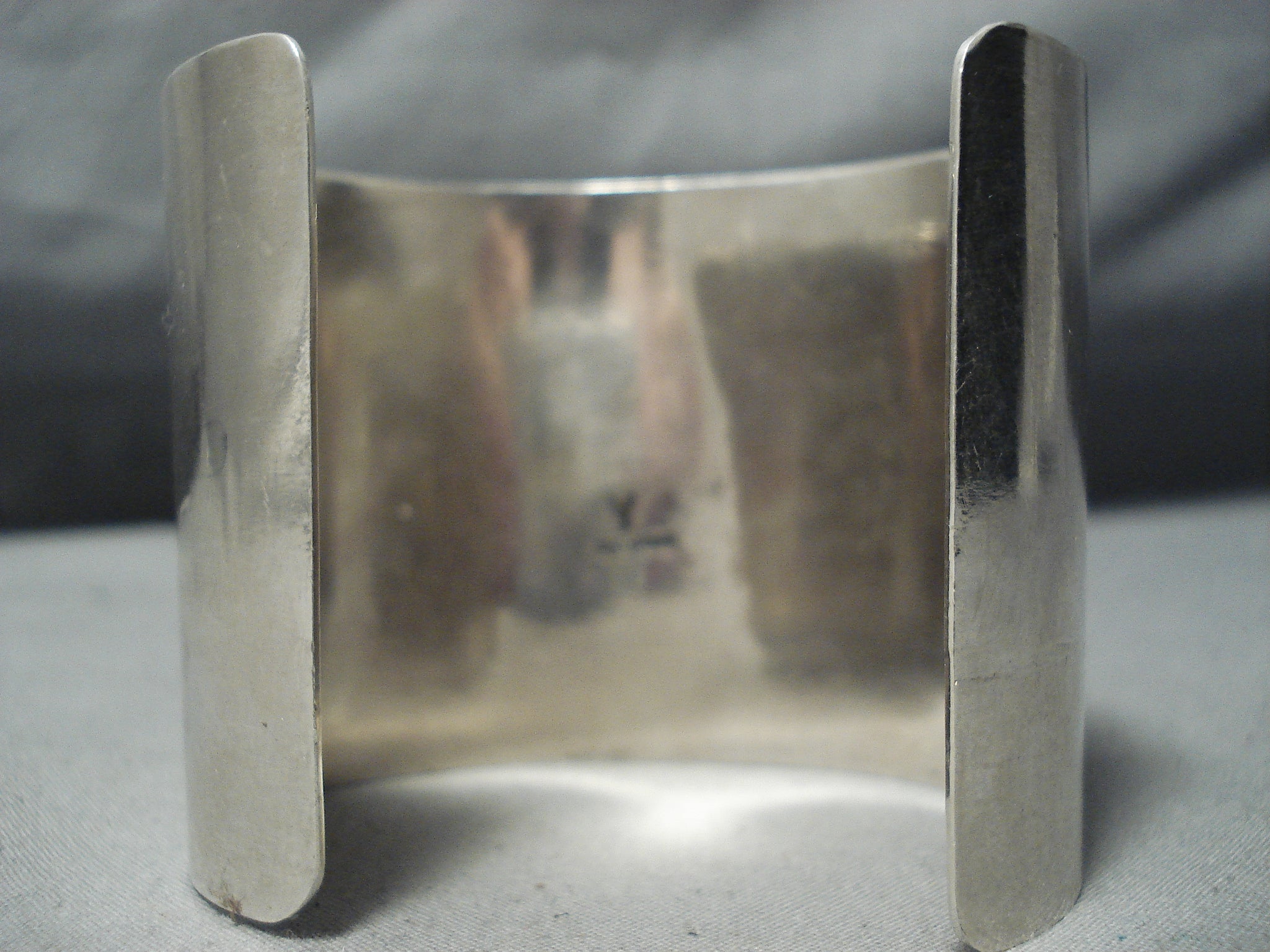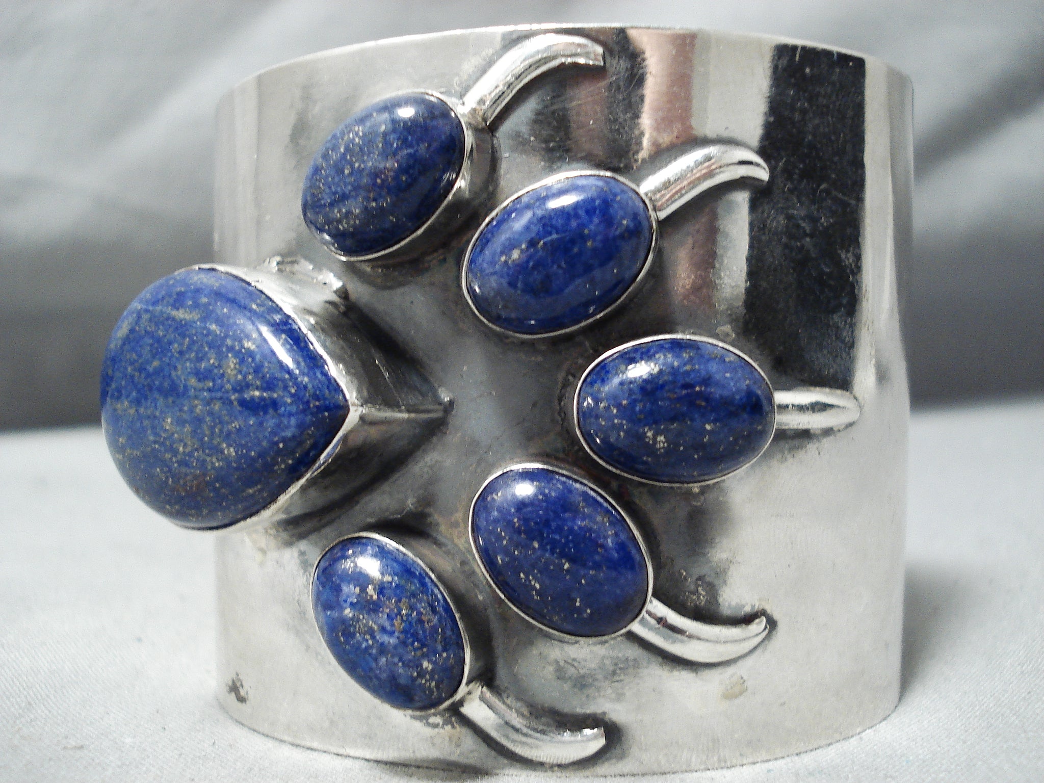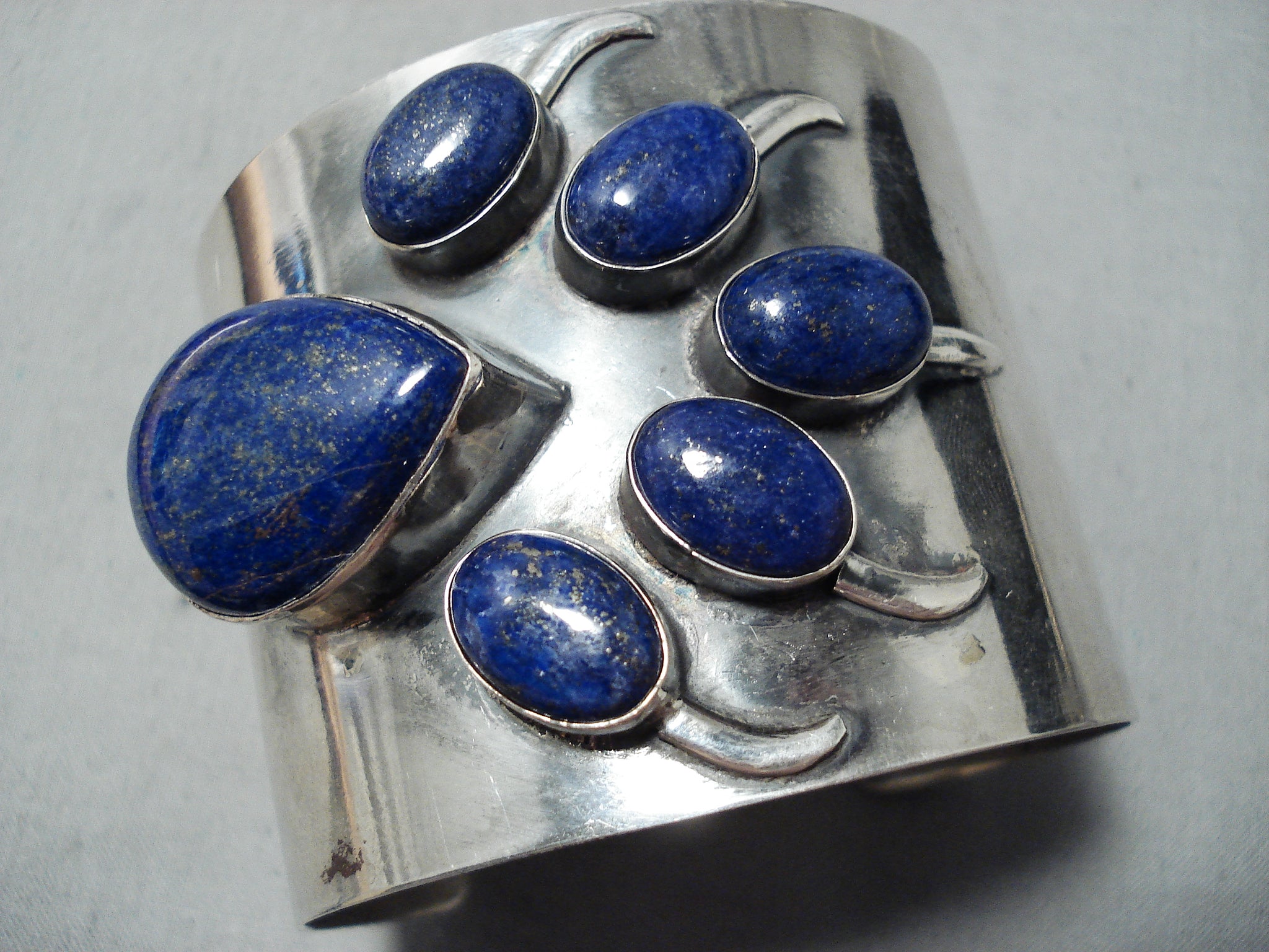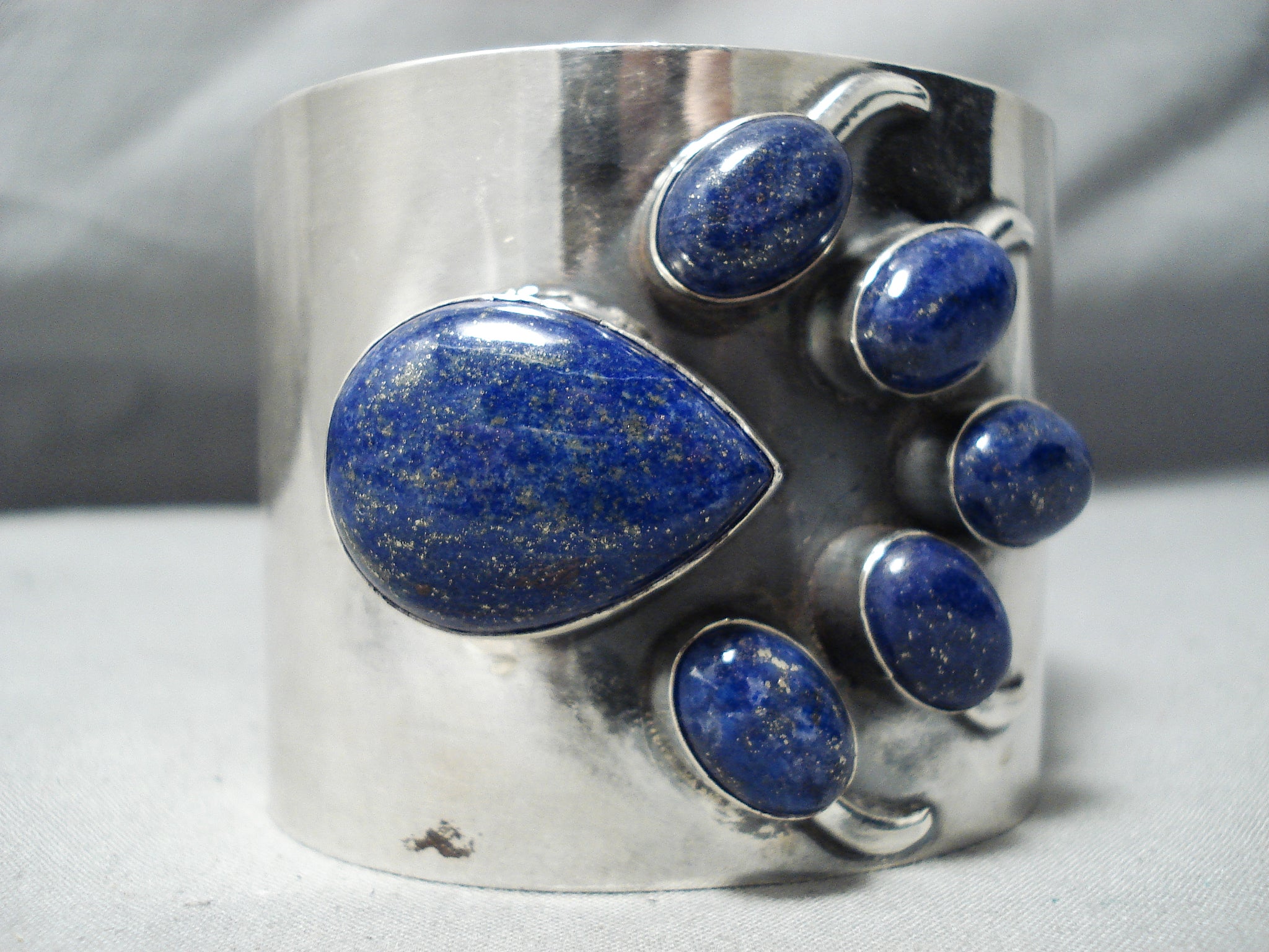 Xxl Wide Vintage Native American Navajo Midnight Lapis Sterling Silver Bracelet