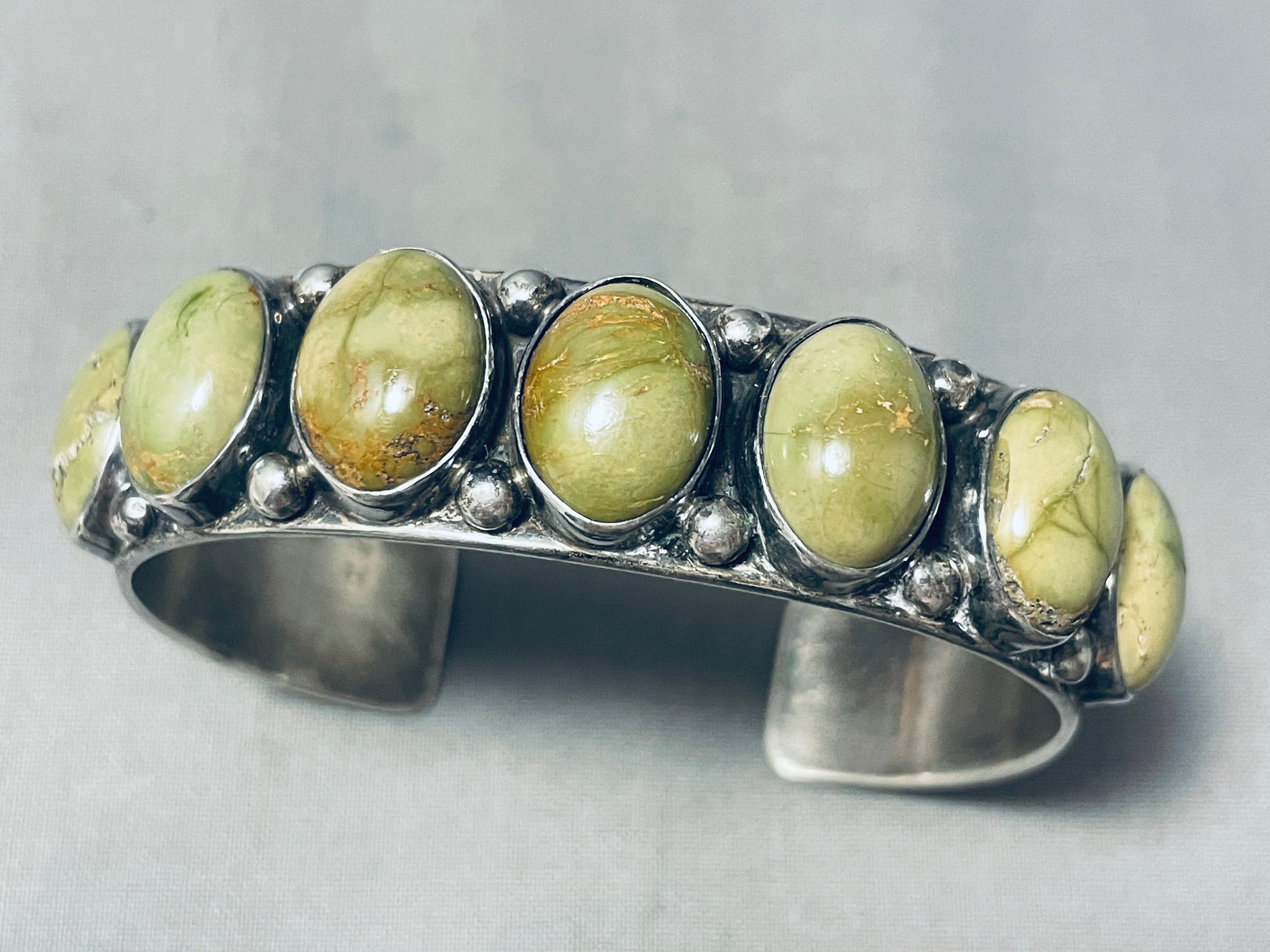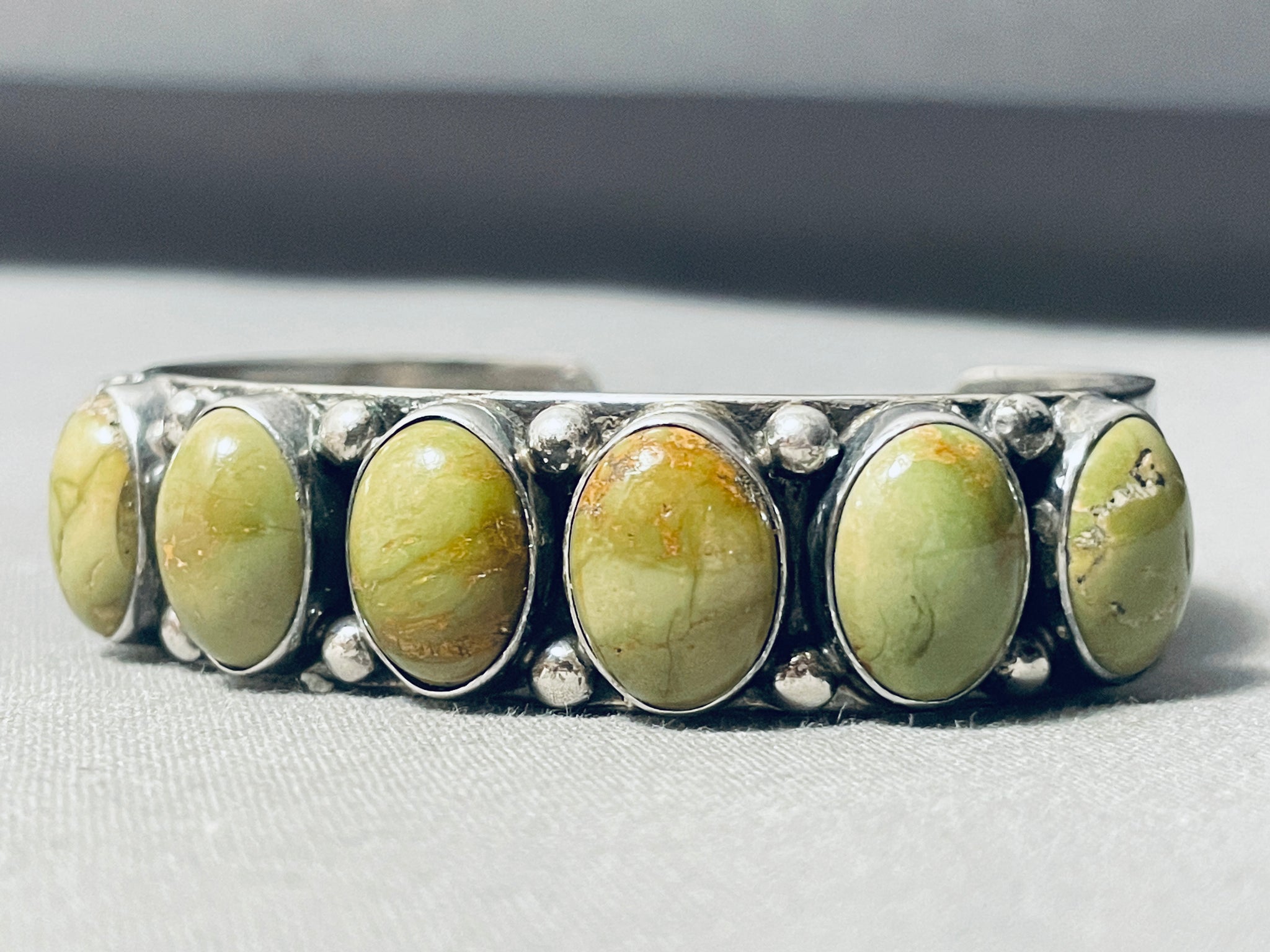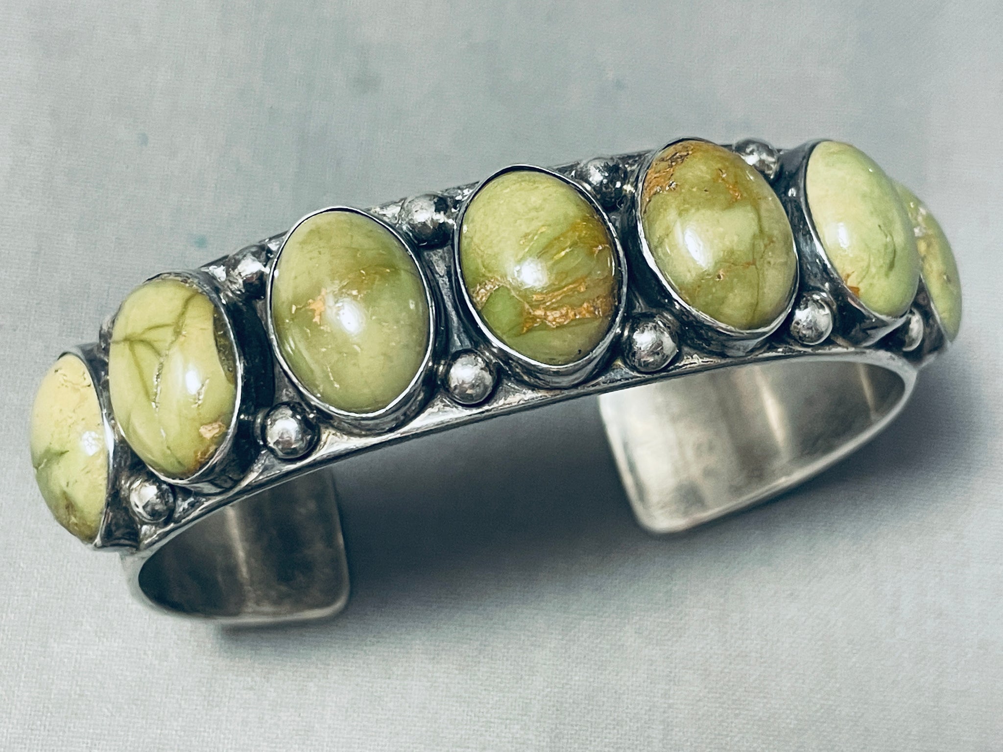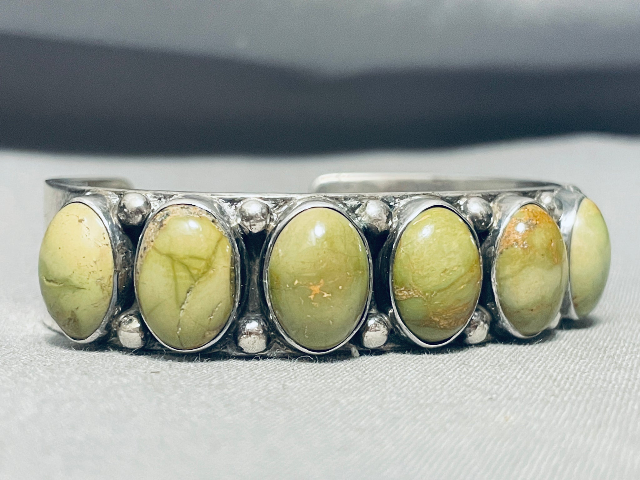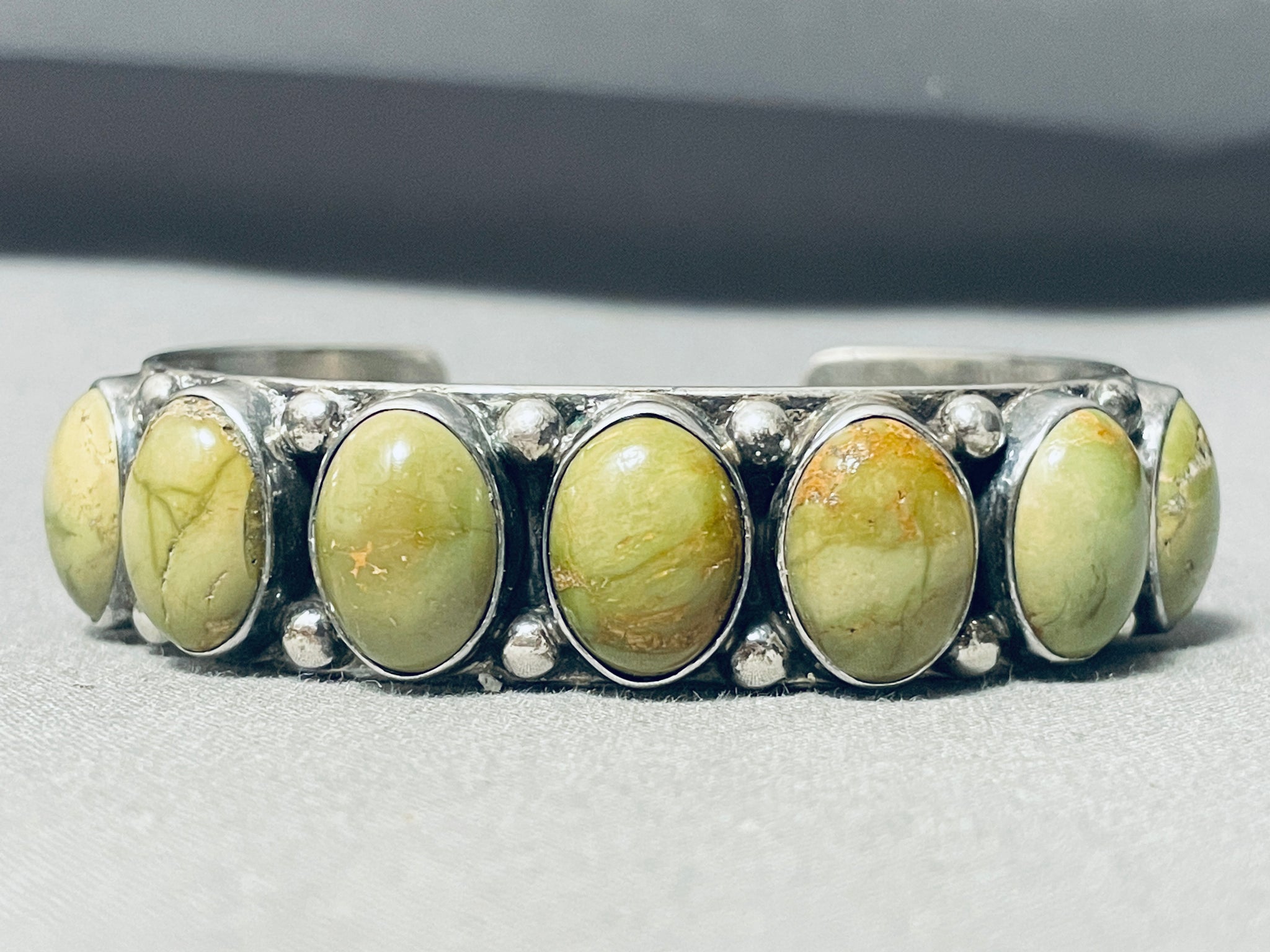 Yazzie Vintage Native American Navajo Green Turquoise Sterling Silver Bracelet